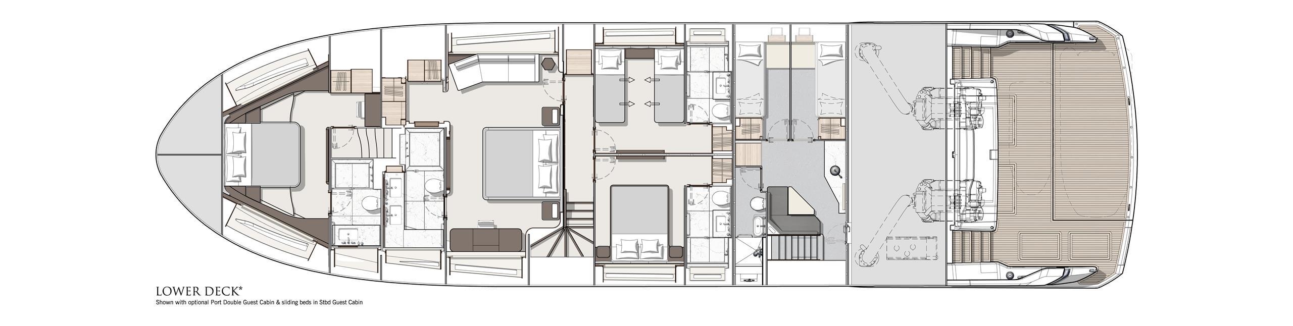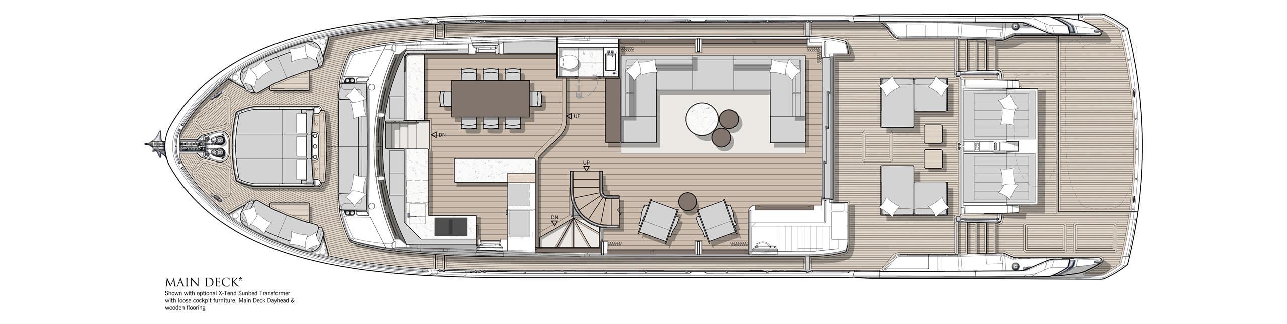 Nowy 90 Ocean Enclosed jest już dostępny. Po popularnym 90 Ocean, ten najnowszy dodatek do rodziny jachtów Ocean Sunseeker oferuje coś zupełnie nowego w asortymencie Sunseeker. Znaczna objętość wewnętrzna sprawia, że jacht jest czymś zupełnie nowym, zaprojektowanym dla innego typu właściciela. Zamknięty most Flybridge zapewnia wyższy, klimatyzowany komfort wnętrza, odpowiedni do ekstremalnie gorącego lub zimnego klimatu lub dla osób szukających większej prywatności. Stacja kapitańska, która zwykle znajduje się na głównym pokładzie, została przeniesiona do jednego steru na moście Flybridge, tworząc luksusową przestrzeń na otwartym pokładzie z wieloma miejscami do siedzenia, która może konkurować z tymi na pokładzie super jachtu. Napędzany silnikiem Twin MAN V12 1650 lub 1900 osiąga komfortową prędkość maksymalną 27 węzłów. Natomiast przy prędkości 12 węzłów zapewnia rozszerzony zasięg do 1800 mil morskich. Niezwykłą zmianą w projekcie 90 Ocean Enclosed jest unikalny kształt zamkniętego mostu Flybridge. Cały główny pokład został zaprojektowany z myślą o użyteczności i łatwości życia i jest dedykowaną przestrzenią do spotkań towarzyskich i rozrywkowych. W salonie do wyboru są nowoczesne, luźne meble; popularnym wyborem jest też duża sofa w kształcie litery U z krzesłami lub dodatkowa sofa w kształcie litery L i wykwintny stolik kawowy. Kuchnia, która jest teraz umieszczona z przodu razem z przestronną jadalnią, oferuje niesamowitą przestrzeń i miejsce do przechowywania, zarówno do użytku własnego, jak i dyskretnego przez załogę ze specjalnym dostępem od strony pokładu bocznego. Kuchnia pokładowa wyposażona jest w sprzęt Miele i, na życzenie właściciela, w chłodziarkę do wina,. Natomiast duży stół w jadalni może pomieścić do ośmiu gości. Na dolnym pokładzie, duże przeszklenia zapraszają do wnętrza naturalne światło dzienne, tworząc jednocześnie wyrazisty profil zewnętrzny, przyciągający wzrok do rufy. Na najniższym pokładzie znajdują się 3 jasne i eleganckie dobrze wyposażone kabiny dwuosobowe oraz kabinę typu twin - wszystkie z łazienką w standardowej konfiguracji. Sypialnia Master o pełnej szerokości jachtu ustępliwą ucieczką do świata prywatności właścicieli, podczas gdy przednia kabina VIP oferuje równie luksusowe doświadczenie. Ponadczasowe wnętrze charakteryzuje się delikatnymi, neutralnymi odcieniami i luksusową mieszanką materiałów o różnych teksturach. Dbałość o szczegóły nie ma sobie równych. Każdy cal jest wykończony w nieskazitelnym standardzie ze starannie przemyślanym oświetleniem wnętrza, które tworzy niepowtarzalny nastrój.